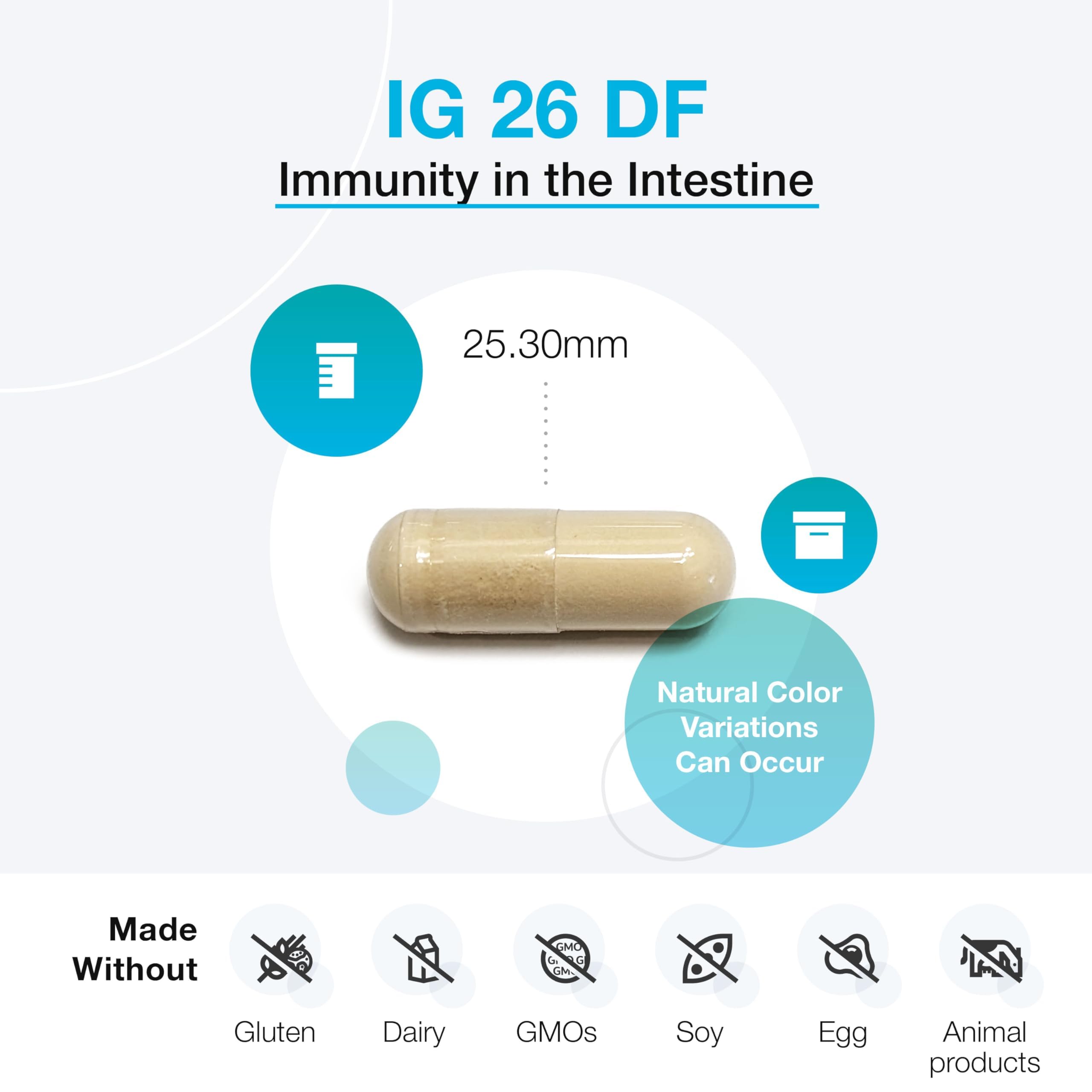 XYMOGEN IG 26 DF - Dairy-Free Immunoglobulin Capsules for Intestinal & Immune System Support - Hyperimmune Egg-Derived Immunoglobulins - 120 Capsules